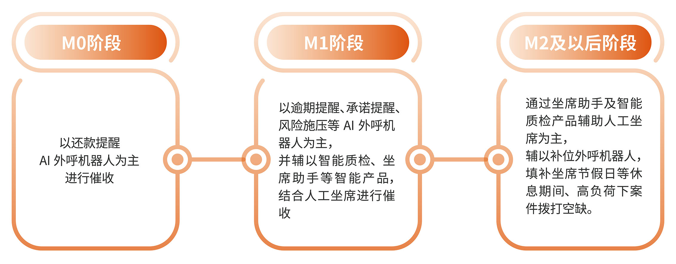 结合催收各个阶段特点,通过智能产品组合,支撑催收业务各个阶段。