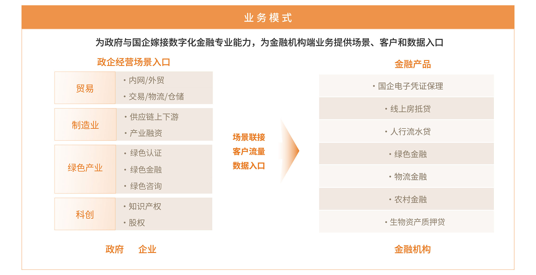 连接政府和企业,实现农业、制造业、科创业、贸易、政采多场景接入。